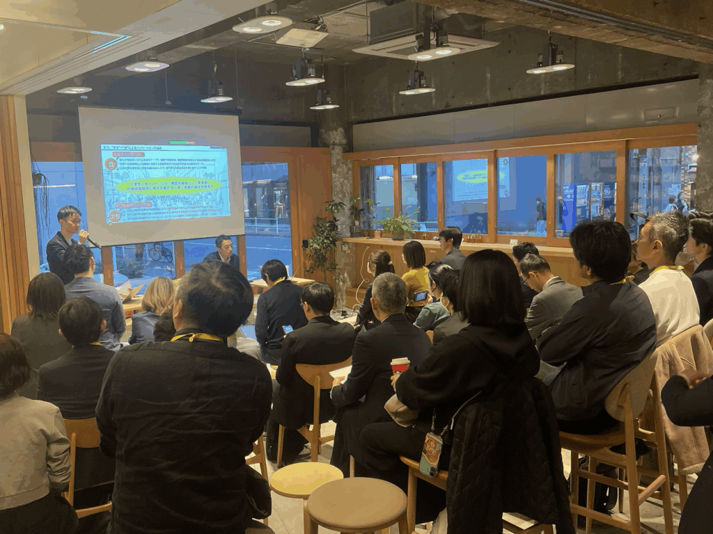 2025年11月14日、Sustainable Food Museum にて「Foodα X Tokyo 共創ミートアップイベント」が開催されました。本イベントには、50名を超える多くのお申込みをいただき、フードテック/ウェルビーイング領域のイノベーションクラスターとして、 東京都のTIB CATAPULT事業として採択を受けているFoodα X Tokyoが主催いたしました 。スタートアップと企業が新たな価値創出に向けて交流する場として実施され、食の社会課題解決を志す多様な参加者が集まり、活発な意見交換が行われました。